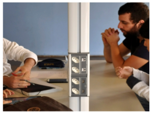Com o piloto aprovado, a solução seguiu para produção. resultado percebido pela equipe: acesso rápido aos pontos de energia e USB, sem quebra de fluxo e sem comprometer a leitura do mobiliário.